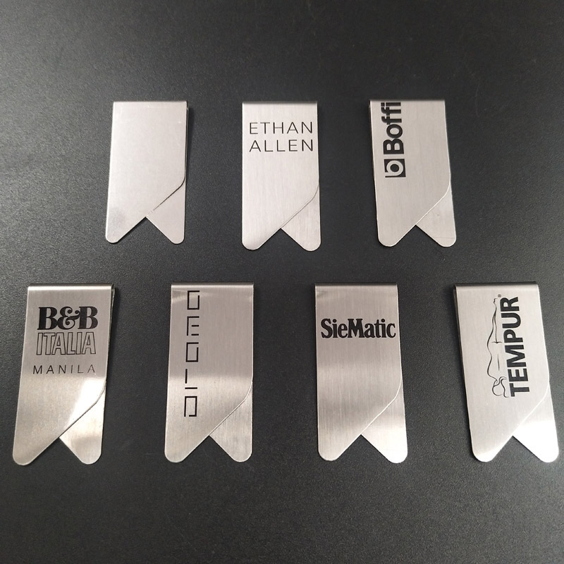 メーカー直販のステンレス製のプレス財布の黄銅の領収書を挟んで商品の販促プレゼントの財布を挟みます。