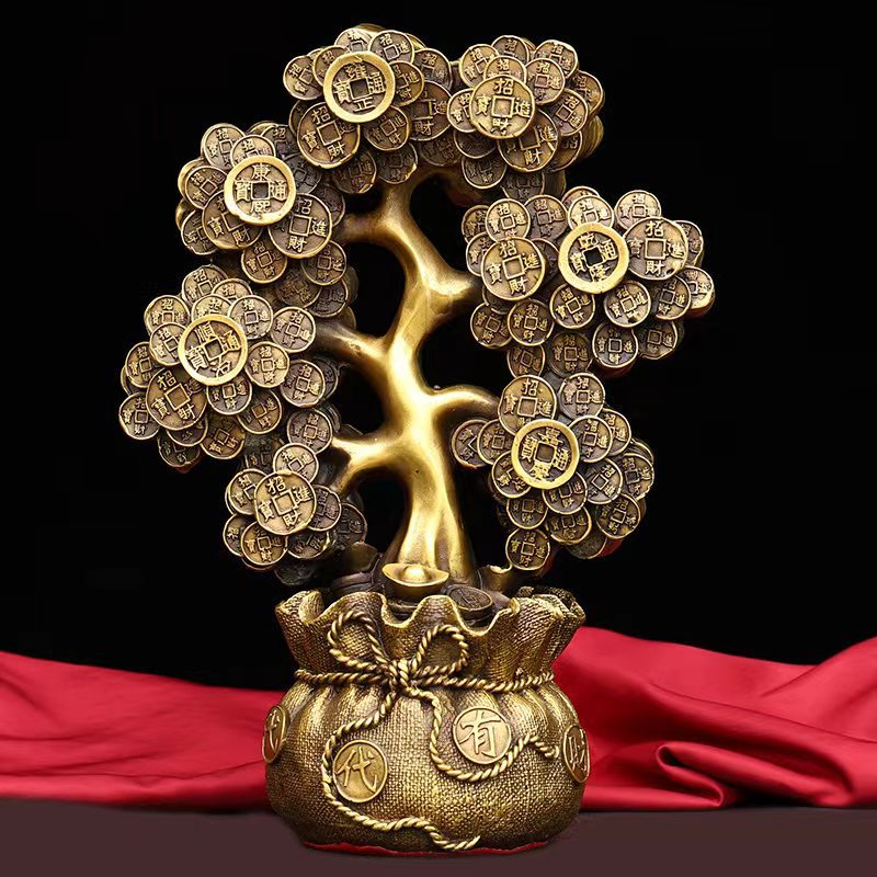 真鍮の銭袋の木の置物の家庭の書斎の装飾品の事務の場所の金属の工芸は代行して銅の実用品を代行します。