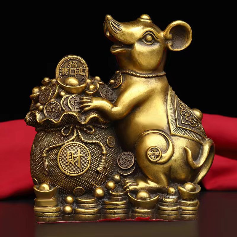 真鍮の財布のネズミの家の置物がオープンしてデスクトップの装飾品をプレゼントします。