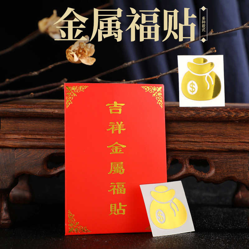 新しいマネーバッグ、赤い封筒付きの縁起の良い金属製の祝福ステッカー、持ち運びに便利な絶妙なステッカー、縁起の良い携帯電話の装飾