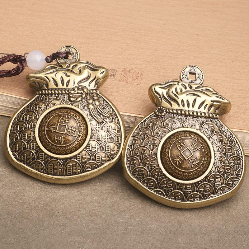 招財入宝福袋財布真鍮の中実回転ハンドルのレトロな男性の創意プレゼントのペンダントが精巧です。