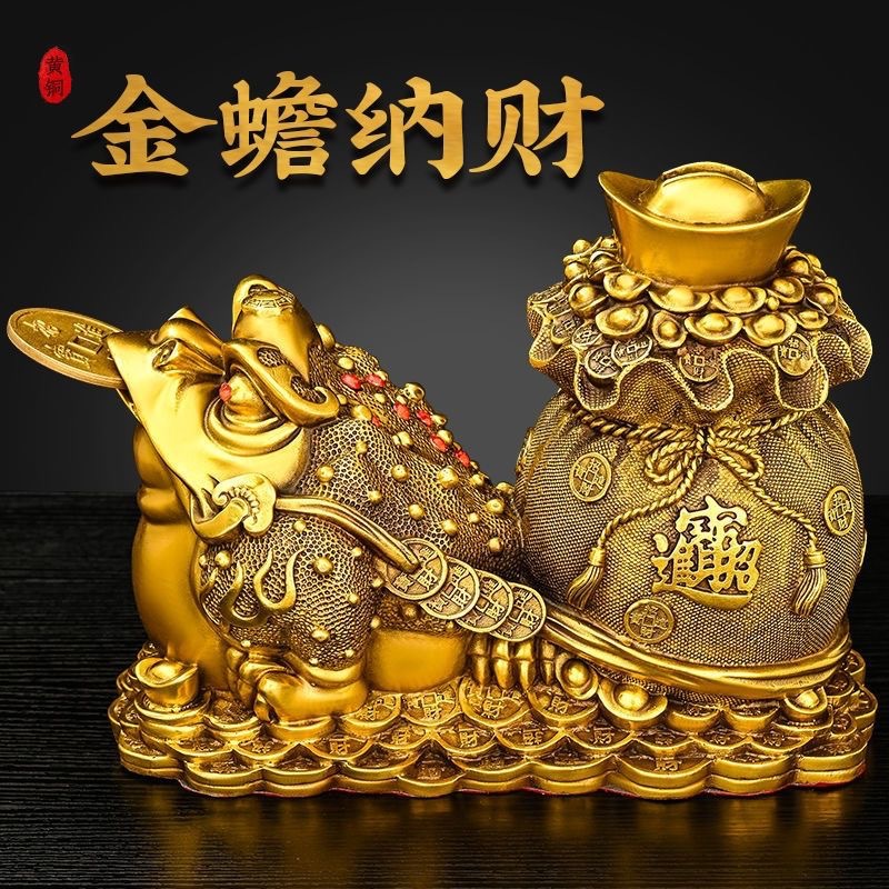 全銅の金のヒキガエルの置物の3足のヒキガエルの宝の鉢のヒキガエルのお金の袋の家の客間の事務室の店舗のデスクトップの装飾