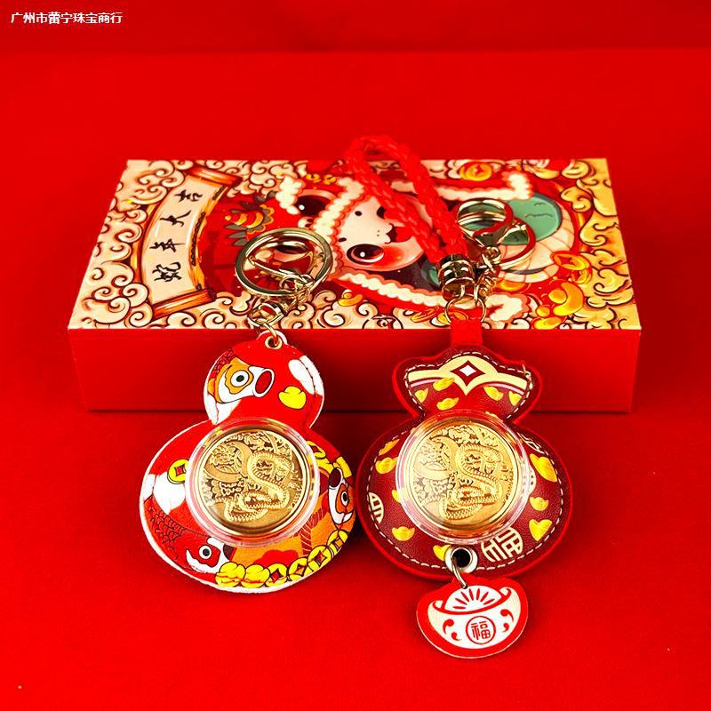 辰年干支記念コインキーホルダーマネーバッグ富と宝を引き寄せる時運ひょうたんバッグカーペンダントギフト