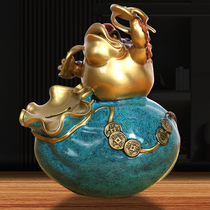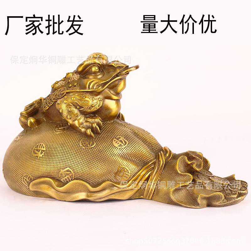 メーカーは黄銅を卸売りして純銅の金のヒキガエルの工芸品を作ってお金の袋の金のヒキガエルの家庭の装飾品の金のヒキガエルを並べます。