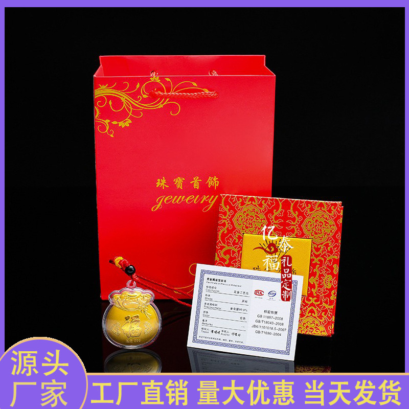 純金福袋ペンダント、マネーバッグ、赤いロープペンダント、プチギフト、手作りギフト、工芸品、保険、開運、販売ギフト
