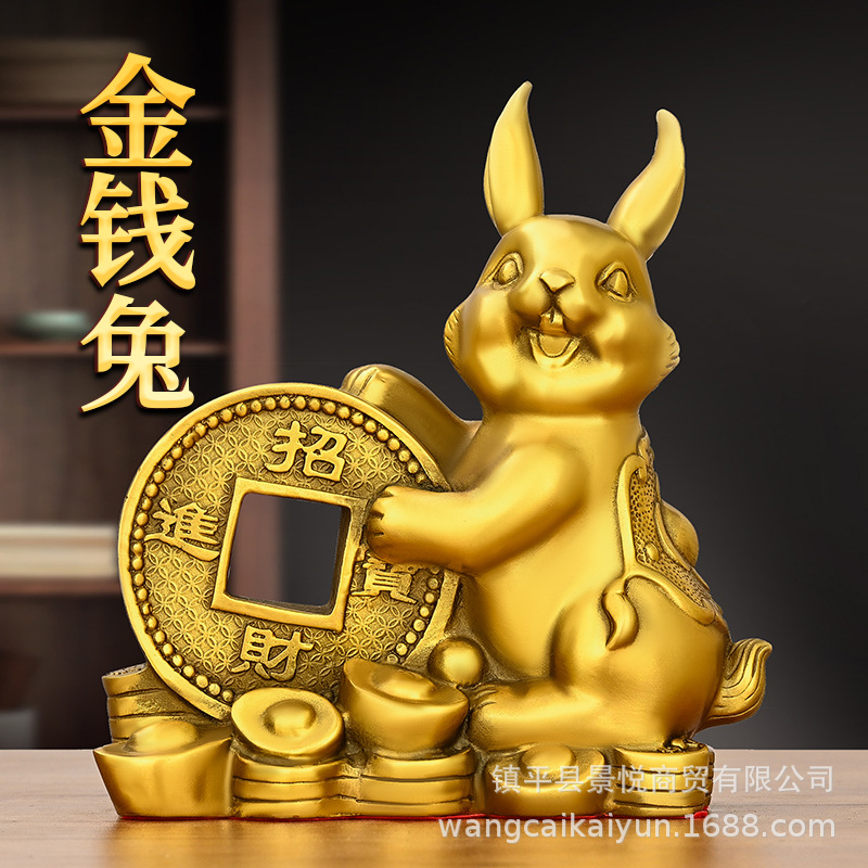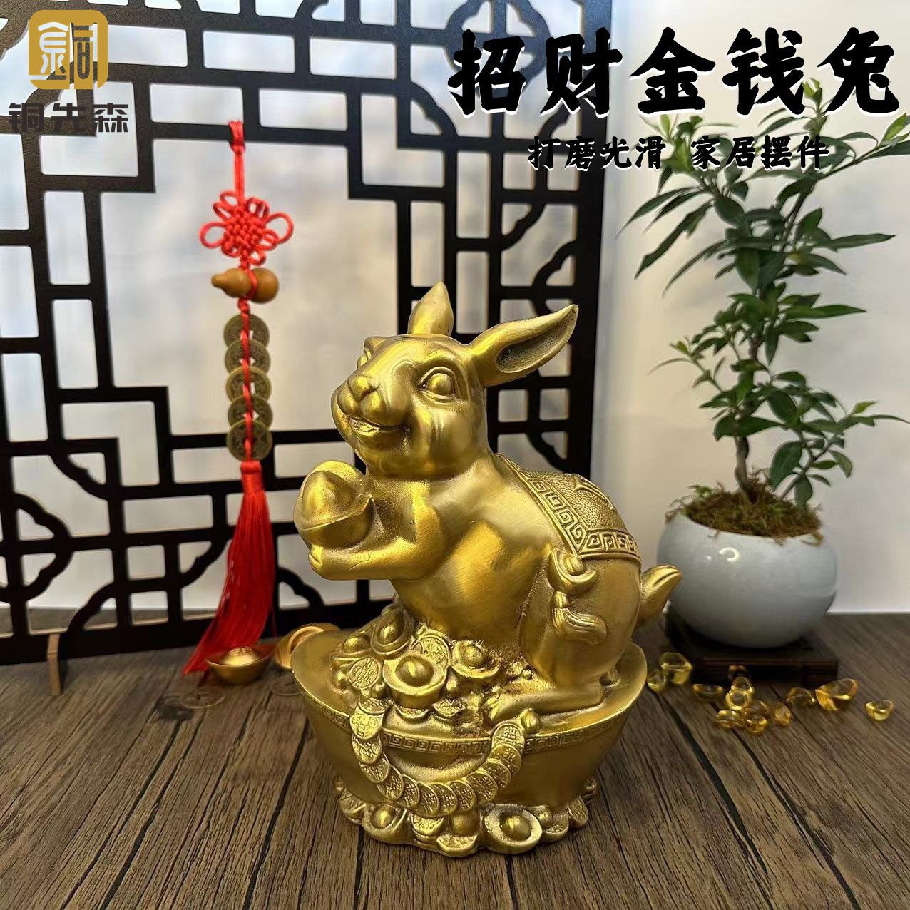 うさぎ置物真鍮工芸品生肖うさぎホームリビングオフィス装飾デスクトップ置物財布うさぎ