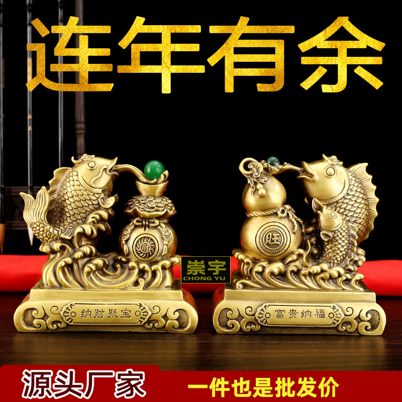 黄銅の魚の置物は毎年魚のお金の袋の魚の福の瓢箪の福禄の魚の事務室の家庭の工芸の贈り物の置物があります。