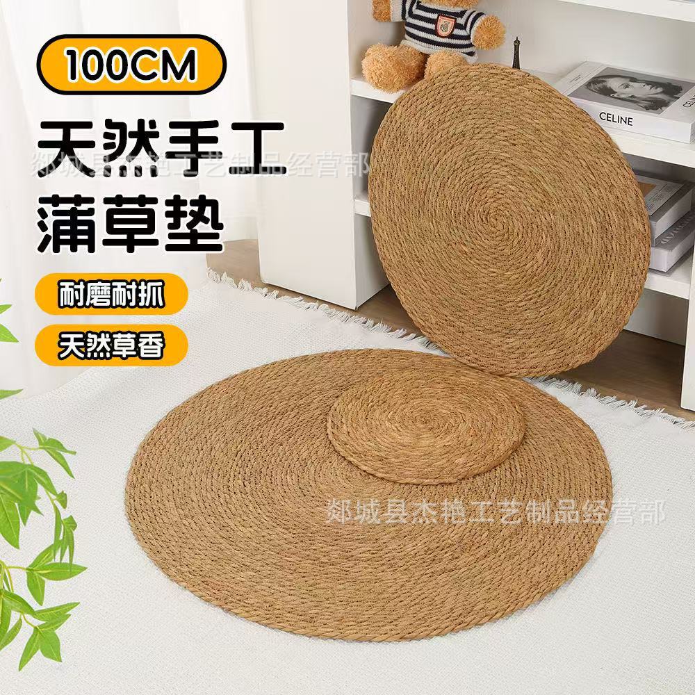 蒲草マットカーペット円形草編み蒲団編み座布団床入戸門客間マット撮影撮影装飾