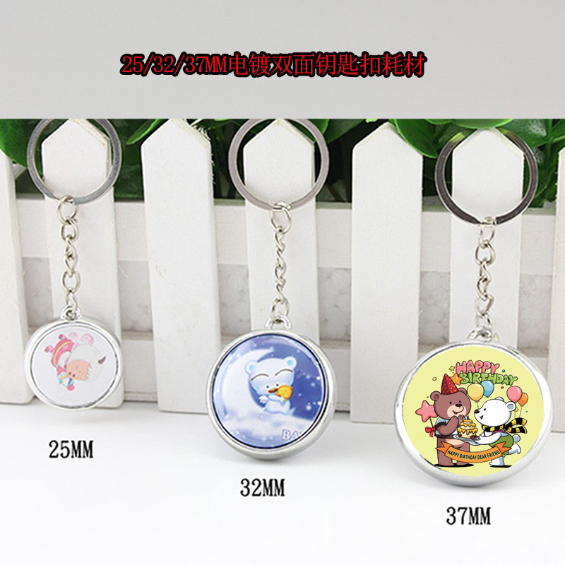 25/32/37mmメッキ両面キーホルダーバッジキー消耗品ブリキバッジ100セット