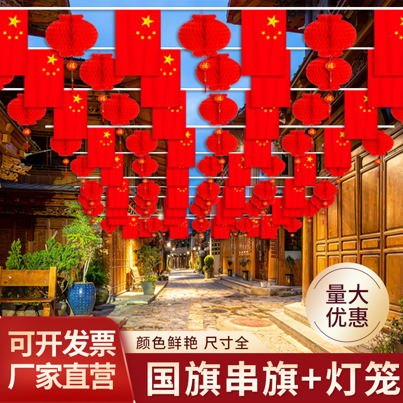 卸売りの小国旗は旗をちりばめて太いナイロンの縄の五星紅旗の国慶節の装飾の小紅旗の雰囲気をプラスして小旗を配置します。