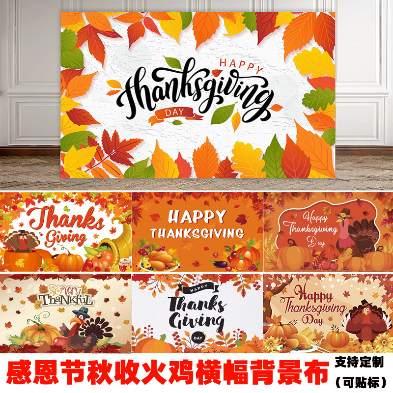 アマゾンの新しい感謝祭の装飾の横断幕の秋の収穫の背景の布の七面鳥は秋の幕の旗を掛けて設計することができます。