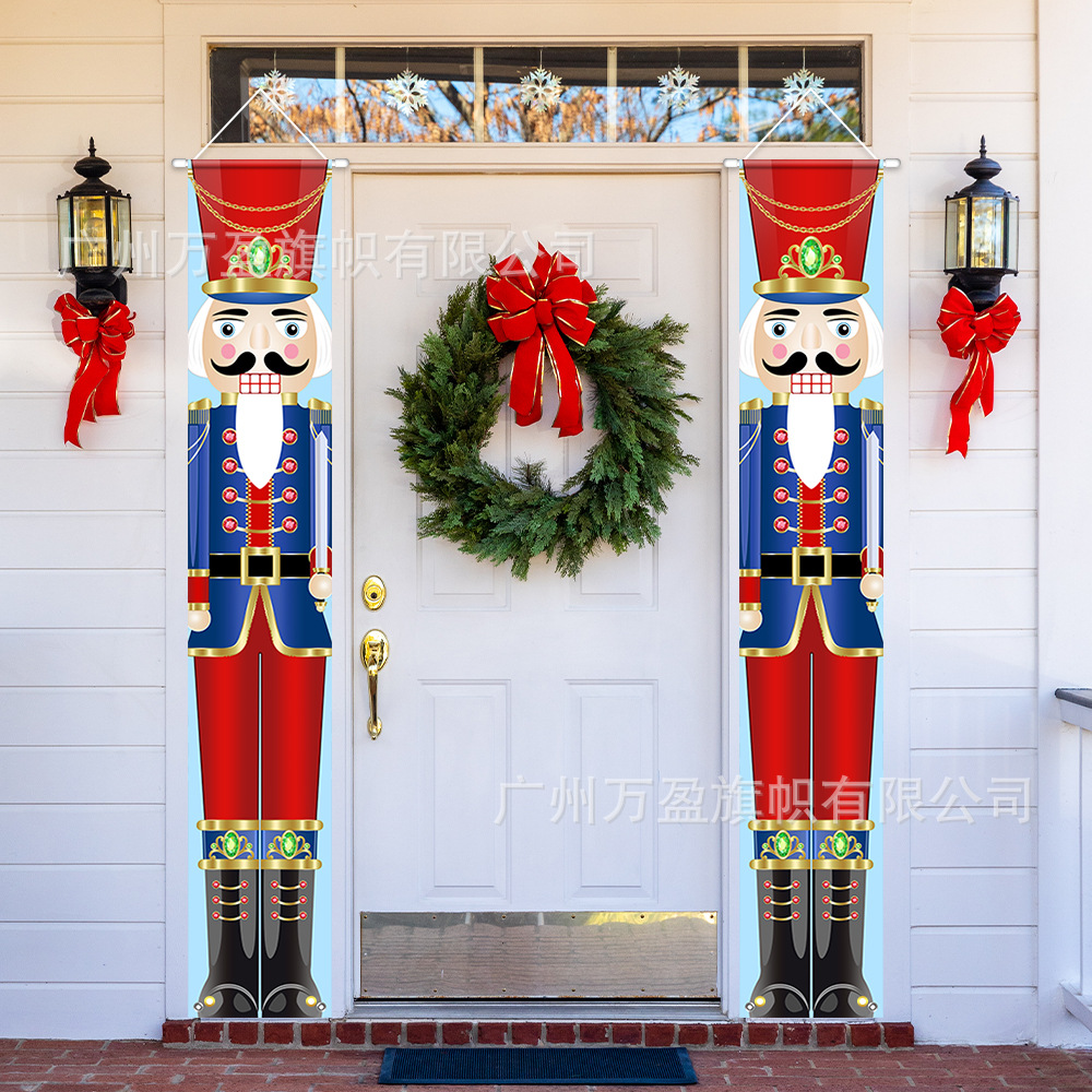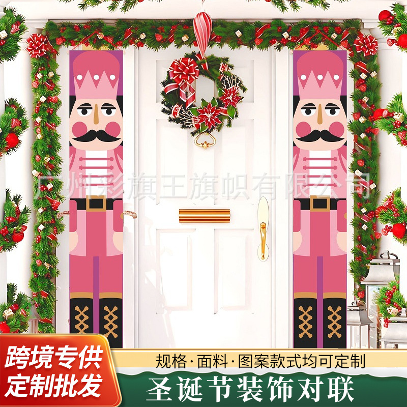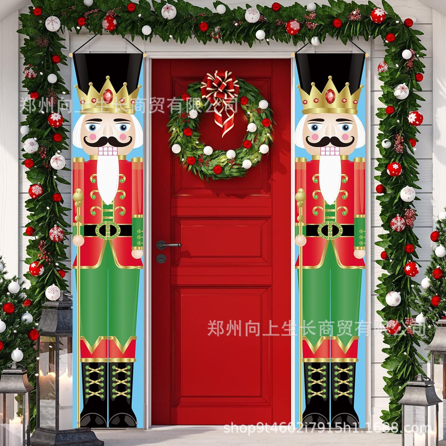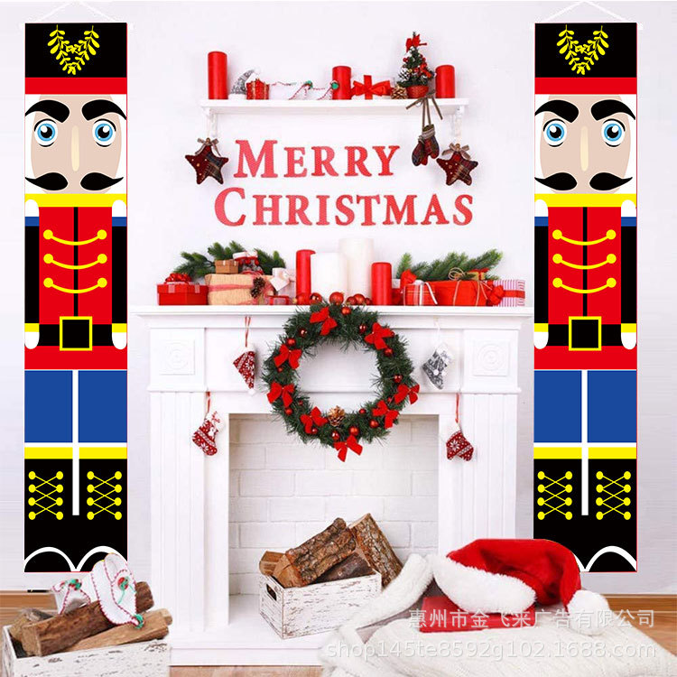 国境を越えた新しいクリスマスくるみ割り人形兵士の対聯、屋内外装飾用吊り下げ旗、祝祭用ドアカーテン