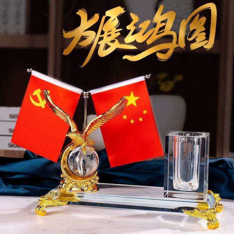 水晶創意紅旗置物デスクトップ筆筒収納ケースオフィス名刺入れ個性創意ビジネス置物