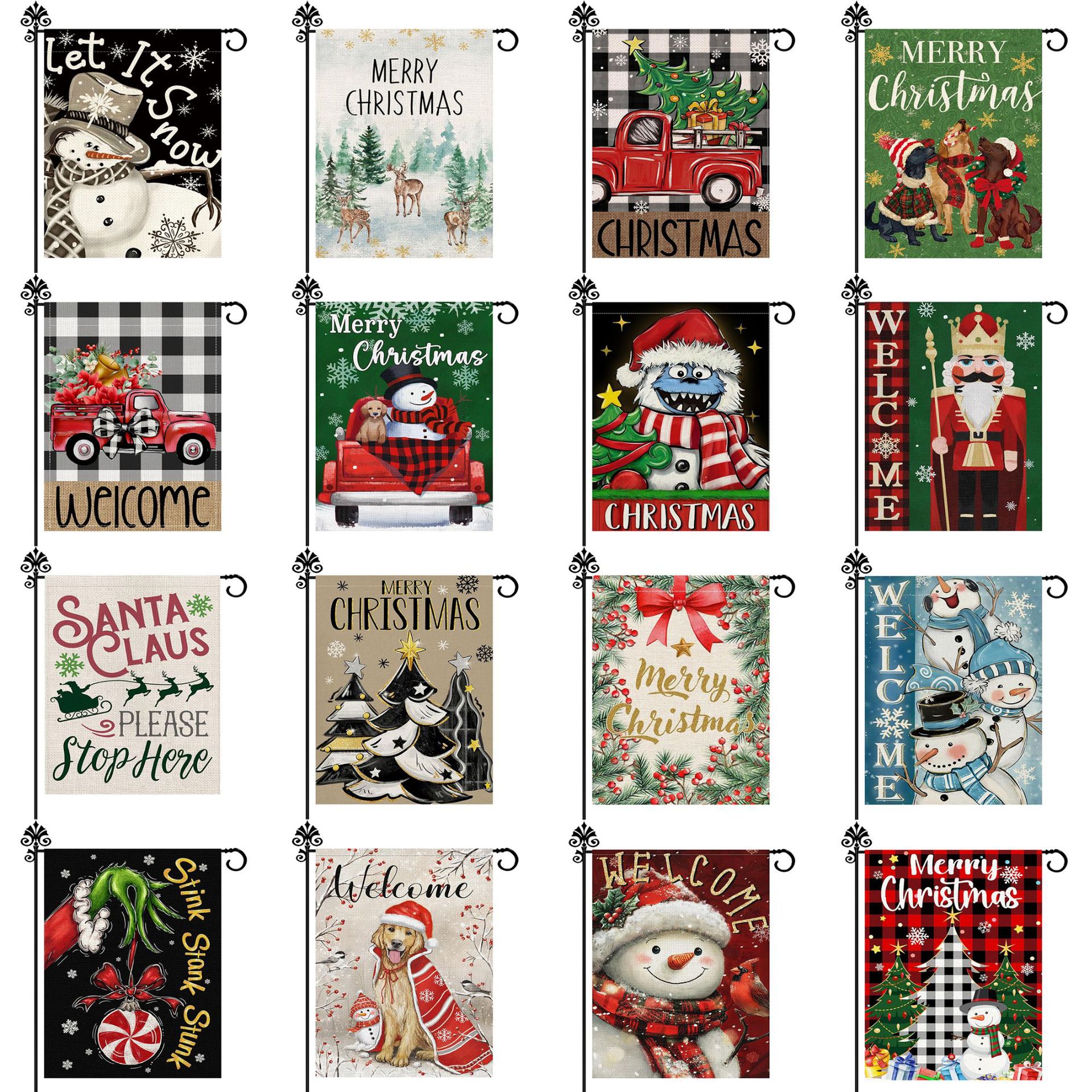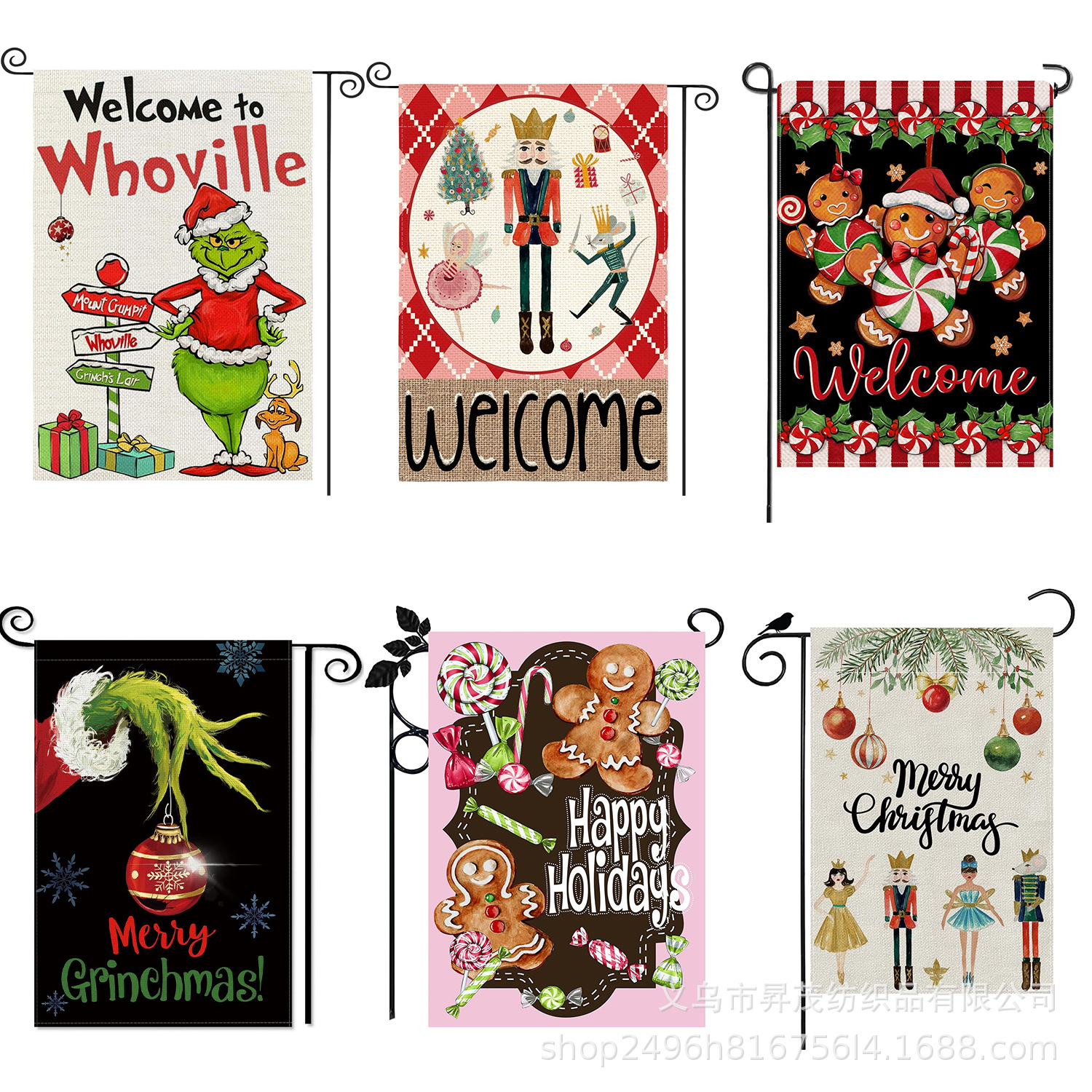 国境を越えた新しいクリスマスガーデン旗グリーン奇姜餅人胡桃クリップ屋外庭園亜麻両面旗