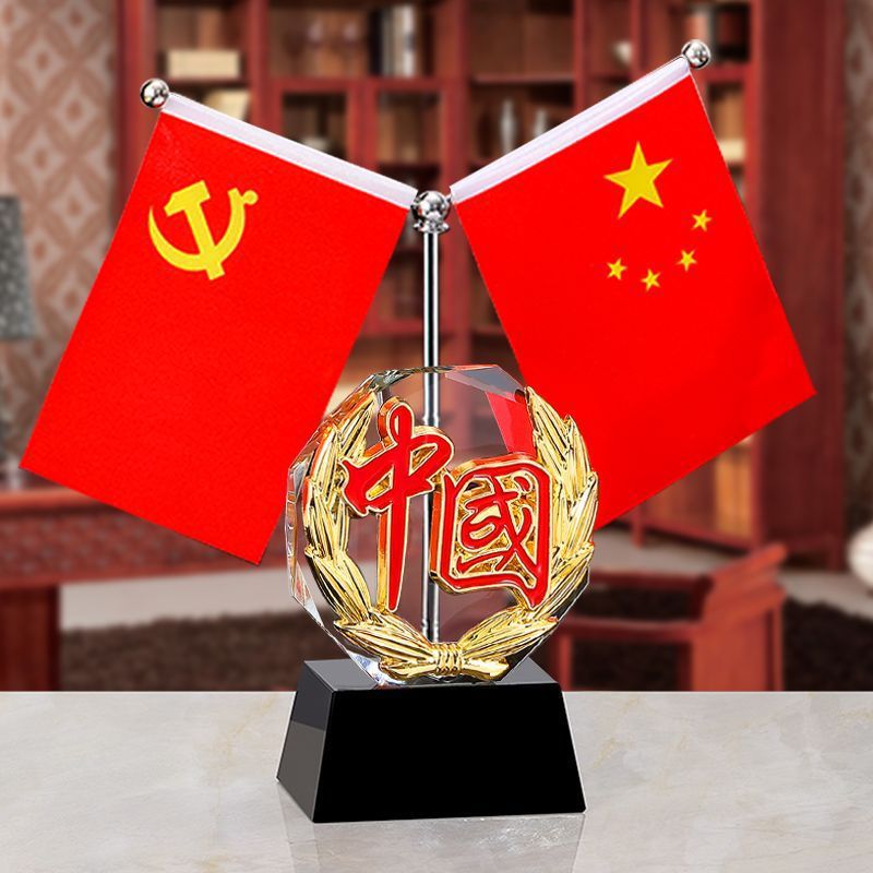 五星紅旗国旗置物筆筒置物テーブル旗高級高級高級水晶工芸品記念事務置物