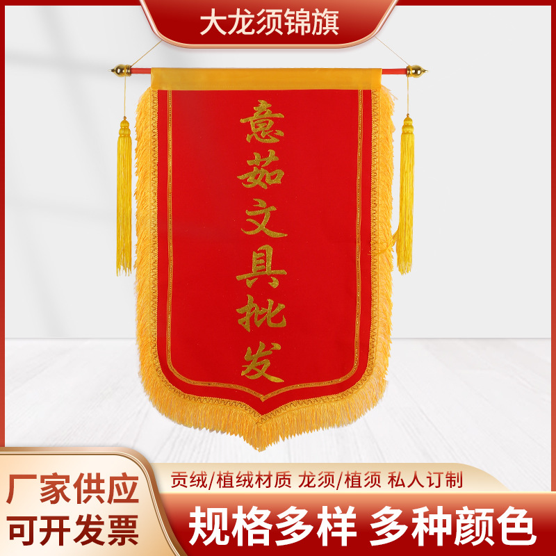 植毛錦旗を供給して医者の先生の弁護士に掛け穂の赤い空白の竜須植須錦旗を持ってもらいます。