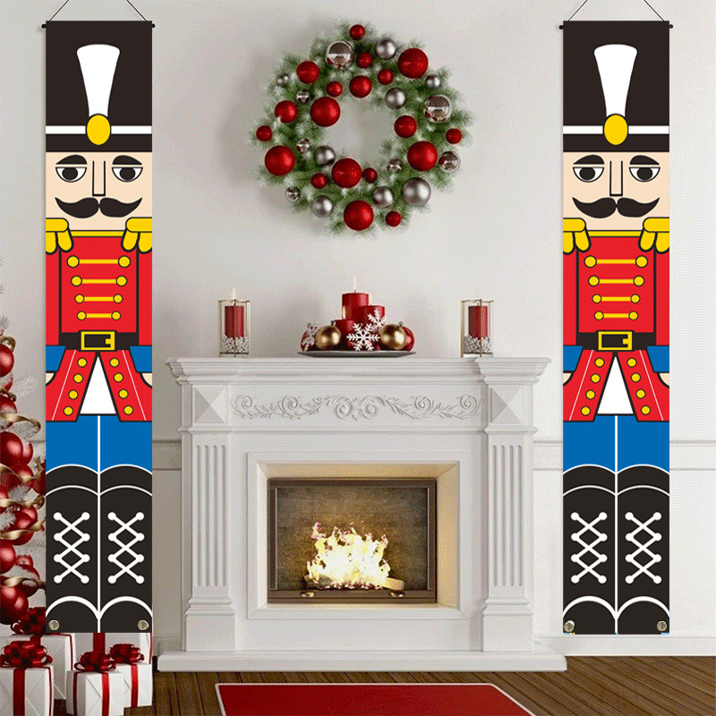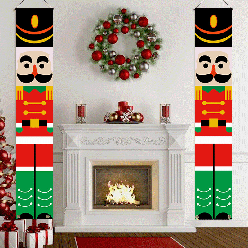 クロスボーダークリスマスポーチフラグクリスマスパーティーくるみ割り人形背景装飾新年ドア幅対聯