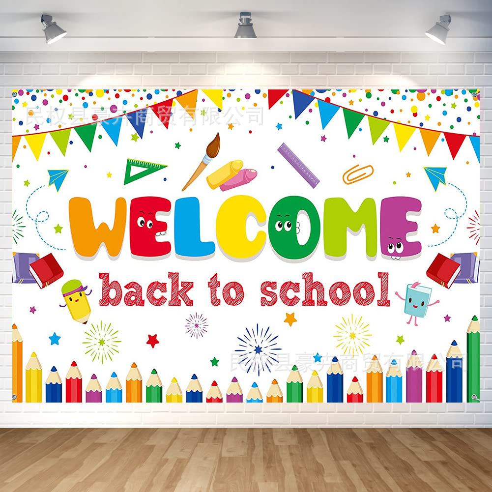 クロスボーダー入学シーズン帰校シーズン背景布カラー絵筆花火子供帰校パーティー装飾横断幕掛け旗布