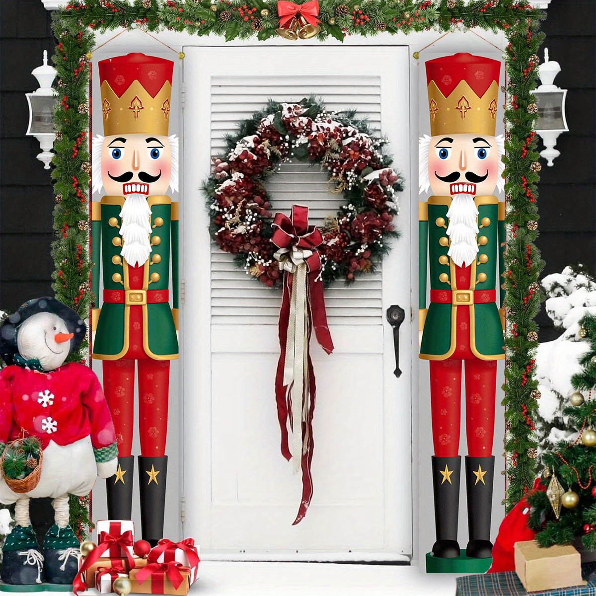 クロスボーダークリスマスドア掛け旗、クリスマスパーティーセレモニー用くるみ割り人形兵士装飾ドアフレーム、カプレット用品