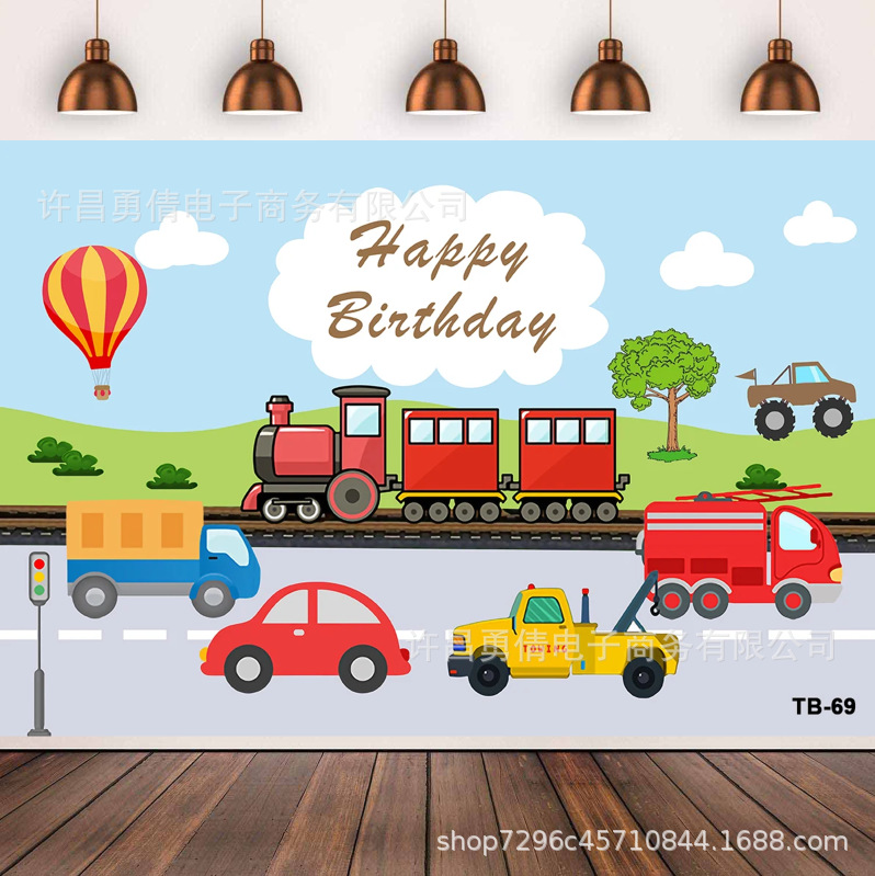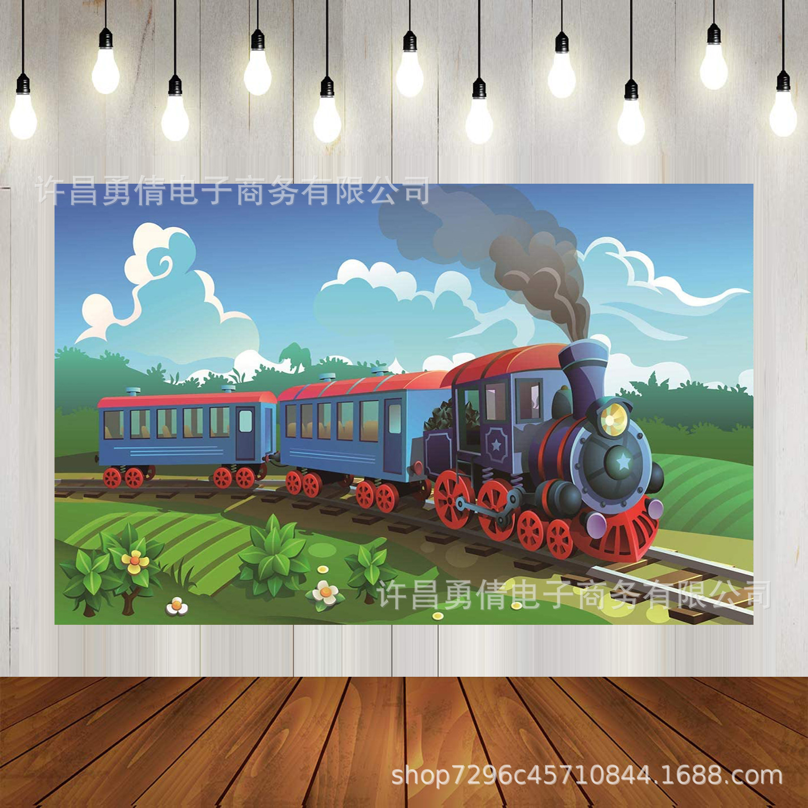 Amazon漫画列车子供诞生日背景布バナーパーティー装饰的な背景旗バナー布