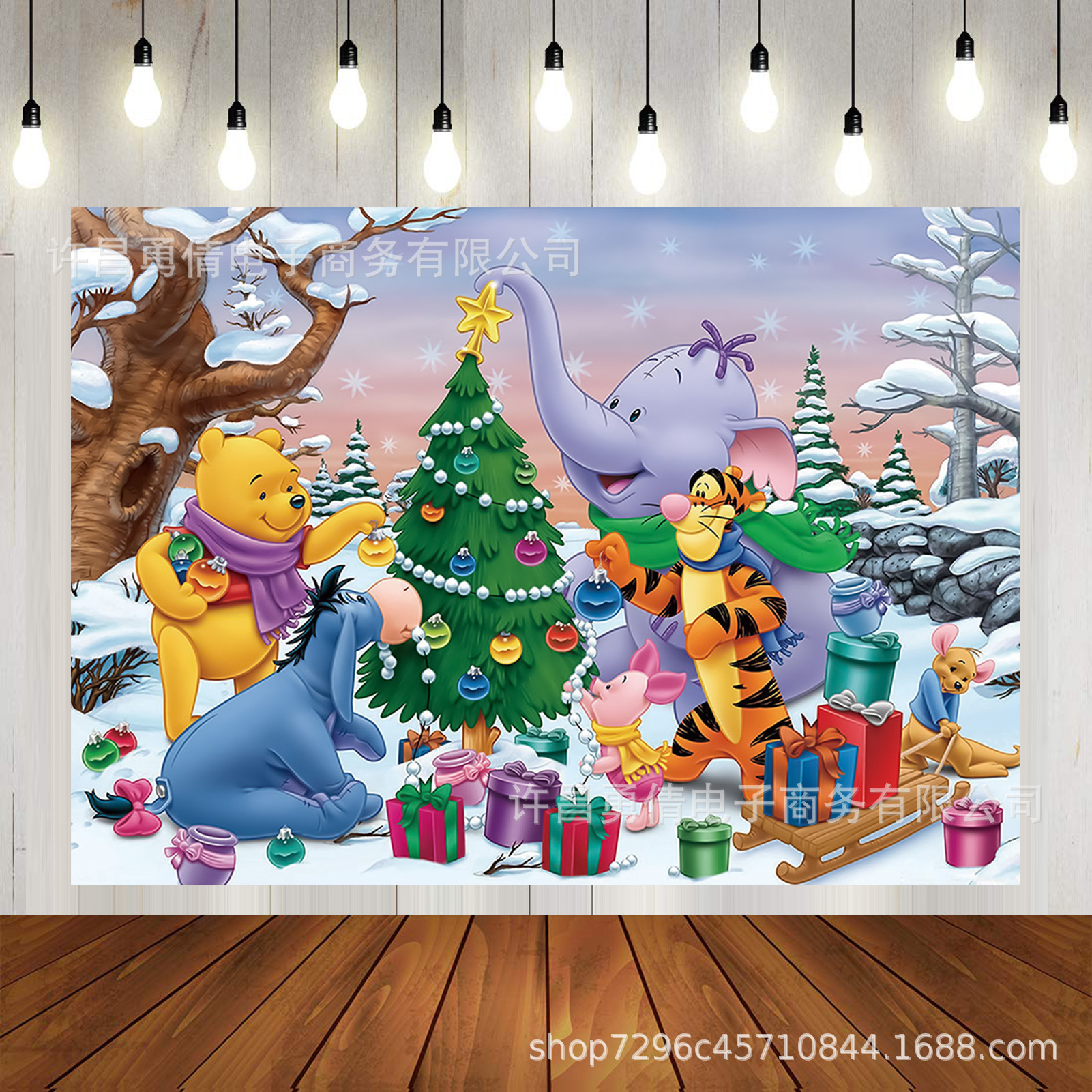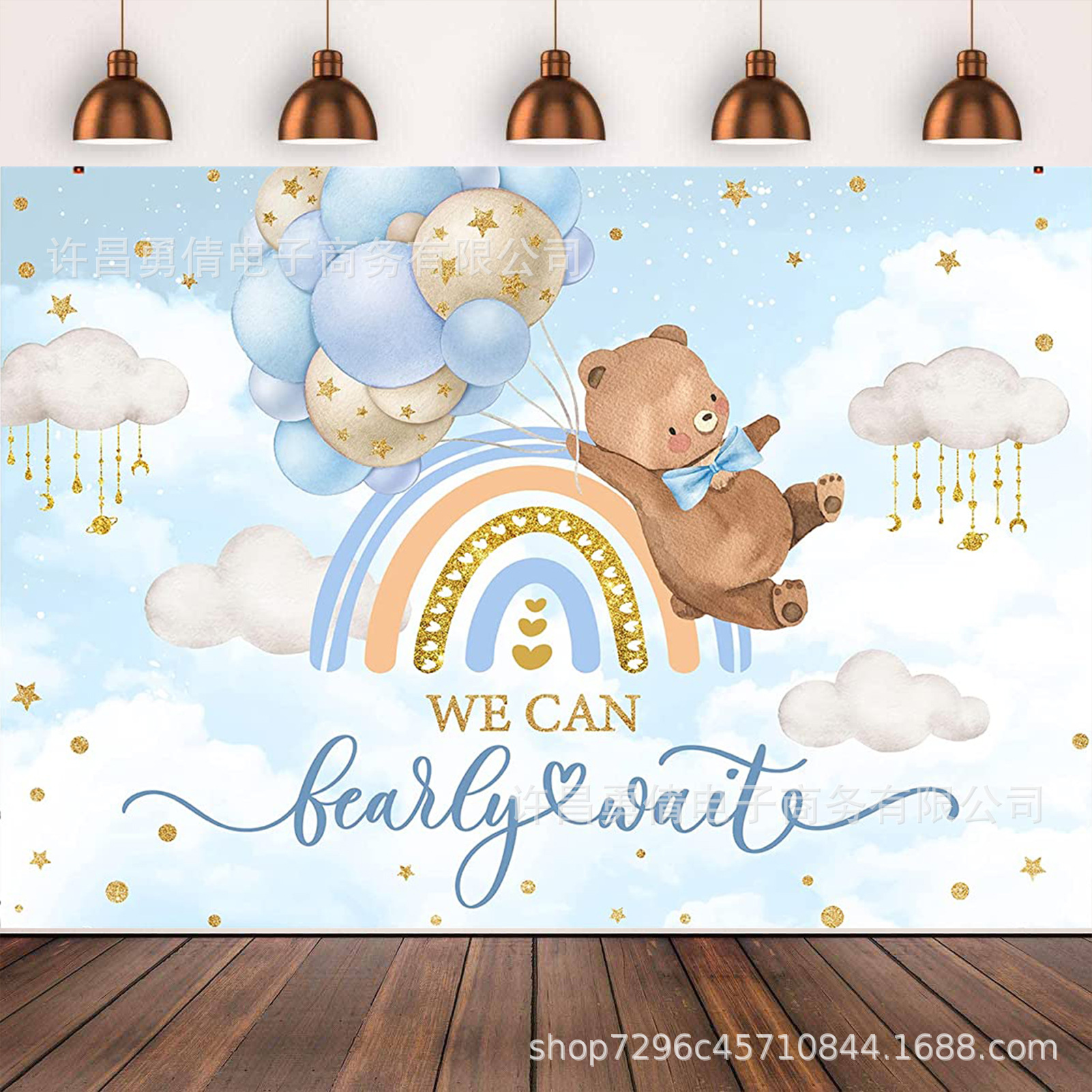 アマゾン漫画ビーニーベアー子供诞生日背景布パーティーアレンジ装饰撮影背景旗布