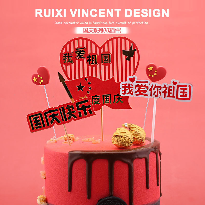 手作りブラインドボックスブラインドボックス国慶節シリーズ紙プラグインケーキ祖国を楽しく過ごす私はあなたを愛していますケーキ五星紅旗焙煎