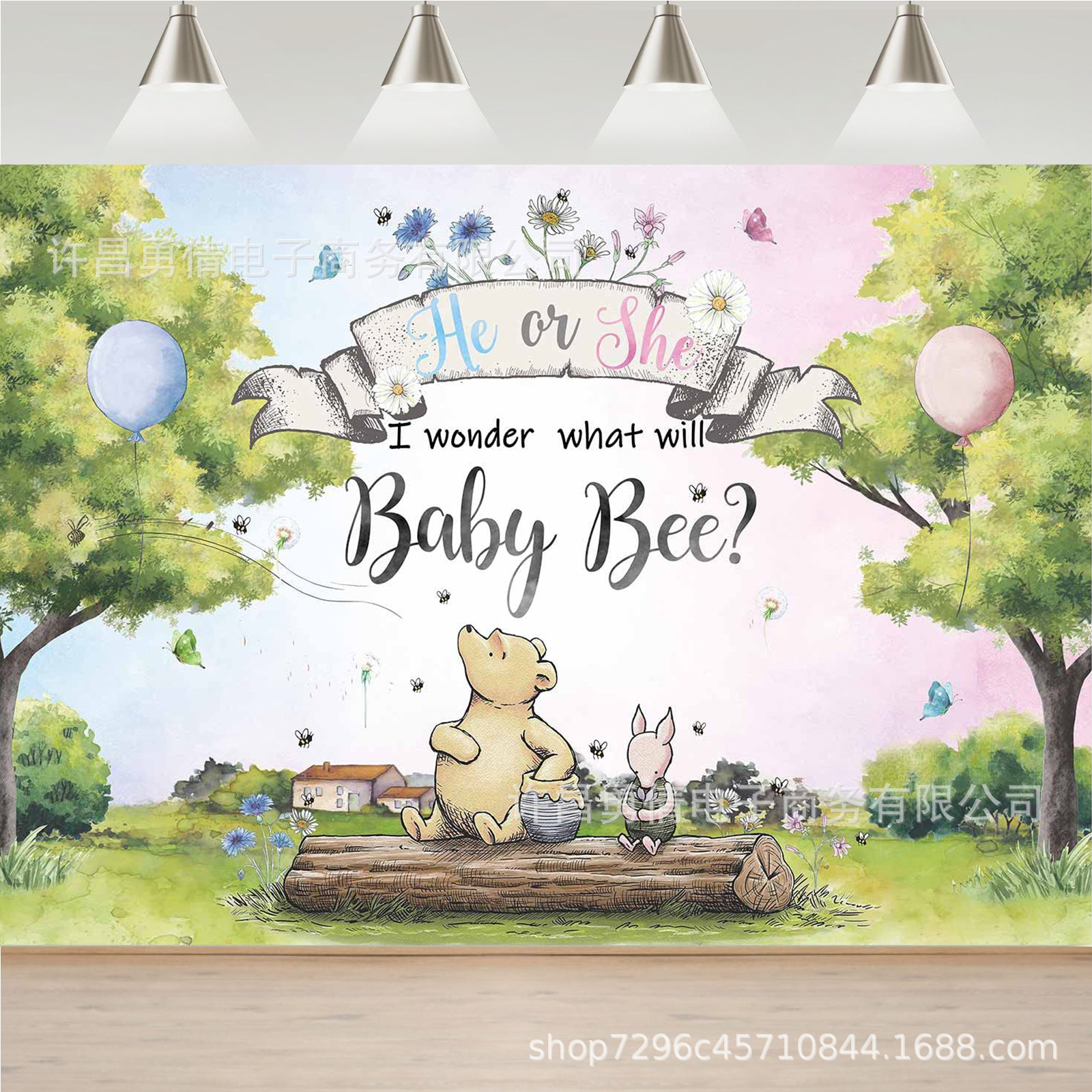 国境を越えたホットセールくまのプーさん性別発表背景布ドア幅ポーチカーテンドアカバー背景布吊り布バナー