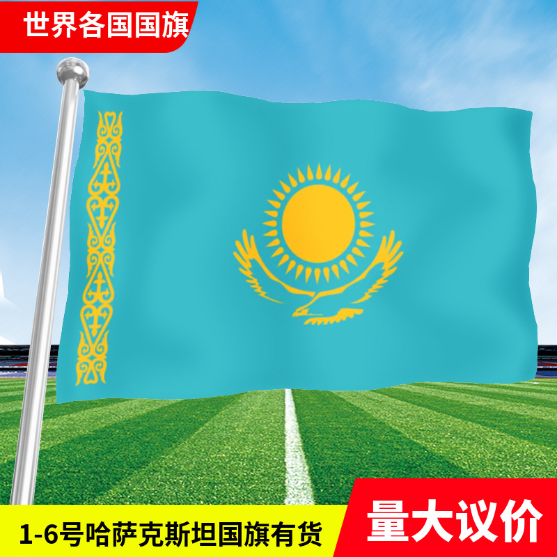 カザフスタン国旗世界各国アジアヨーロッパアフリカアメリカ州オセアニア彩串手振り旗の現物
