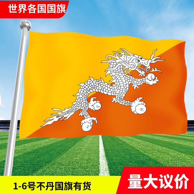 ブータン国旗世界各国アジアヨーロッパアフリカアメリカ州オセアニア彩旗が旗を振っている