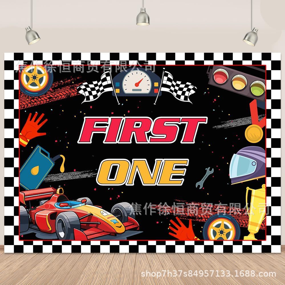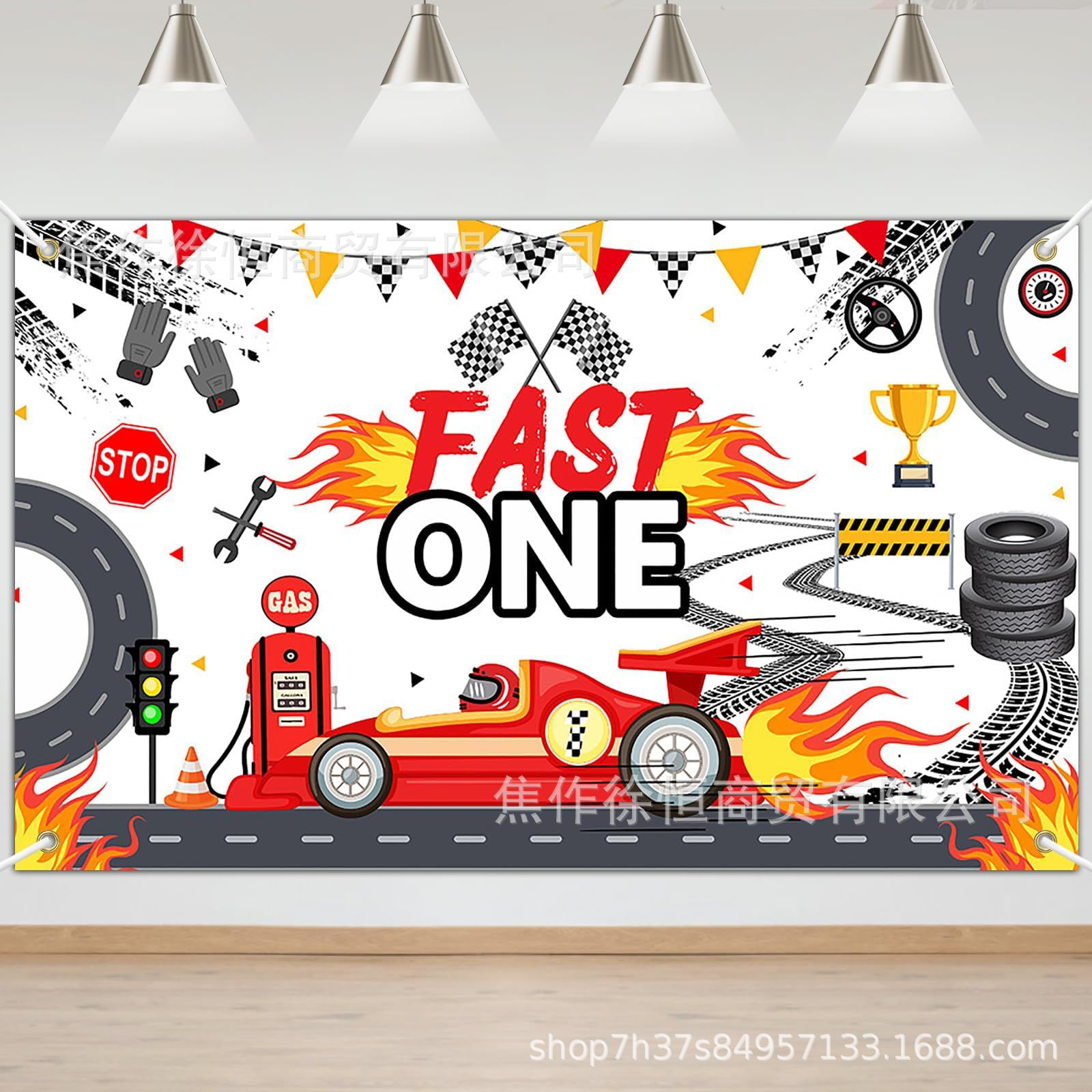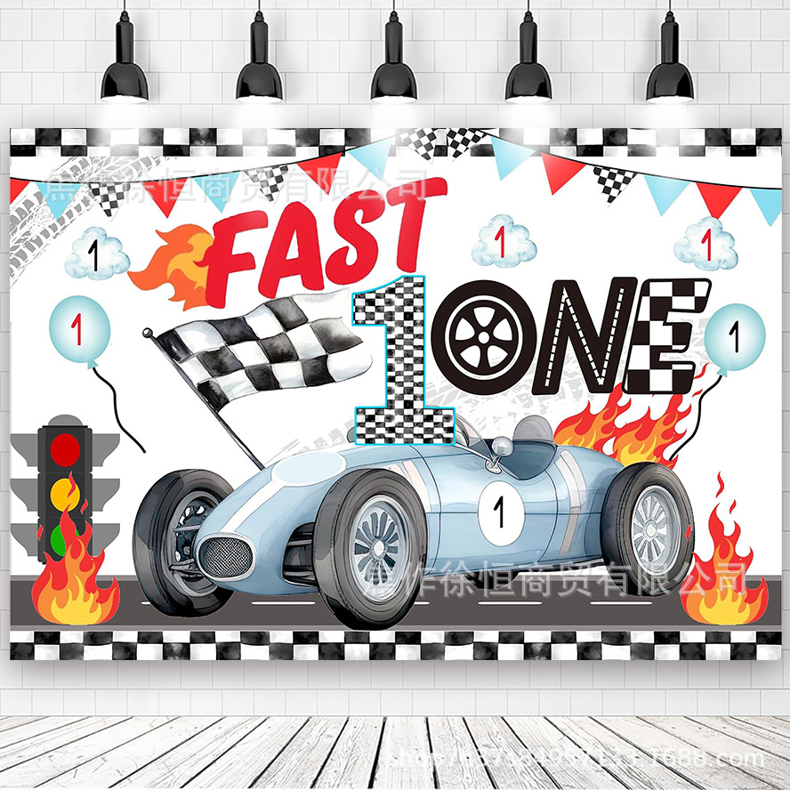 クロスボーダー热い贩売漫画レース诞生日背景布バナー1歳2歳诞生日パーティー装饰的な背景のバナー