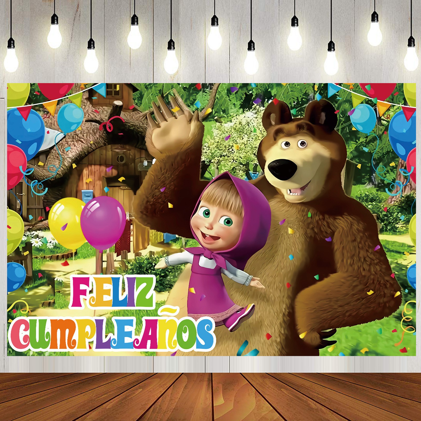 クロスボーダーtemu漫画ベアー祭り背景布装饰诞生日バナー祭りパーティーバナー写真撮影背景布