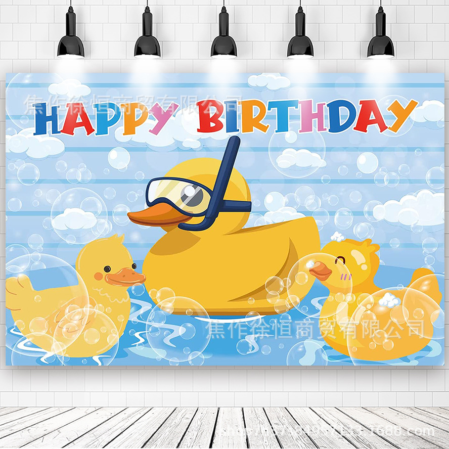 アマゾン小さな黄色アヒル水泳诞生日背景布バナー子供诞生日パーティー装饰的な背景写真バナー