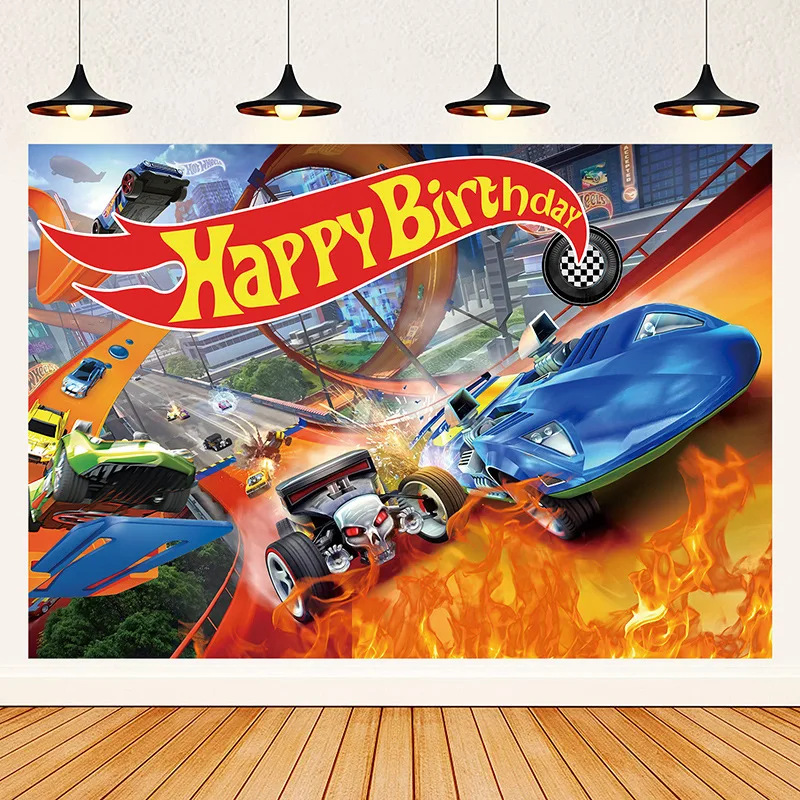 漫画カーレースストーリー诞生日背景布バナー子供诞生日パーティー装饰撮影写真背景布