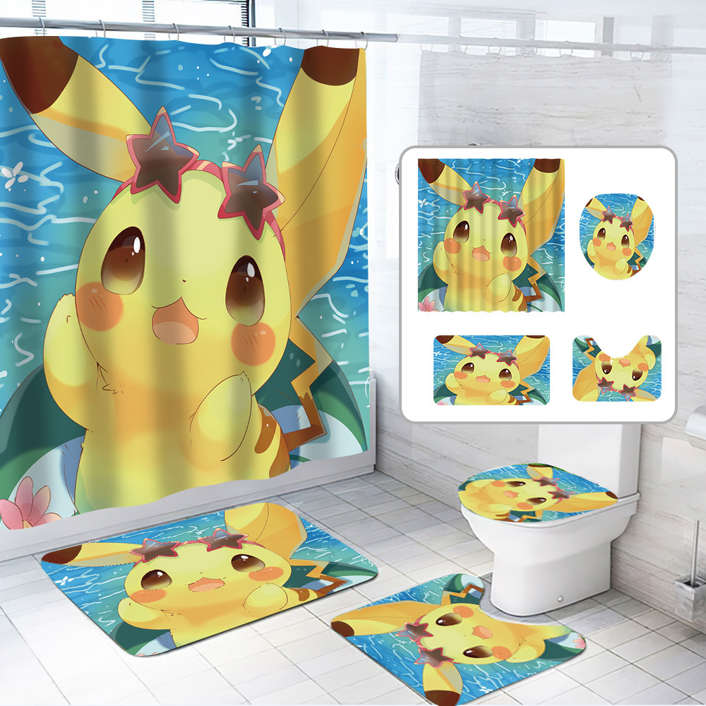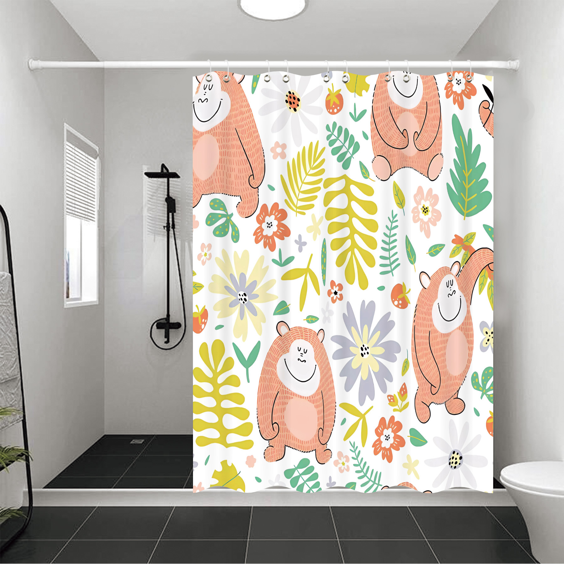 対外貿易砕花熊シャワーカーテン防水防かび厚ポリエステル浴室シャワーカーテン4点セット床マットトイレマットマットマットマット