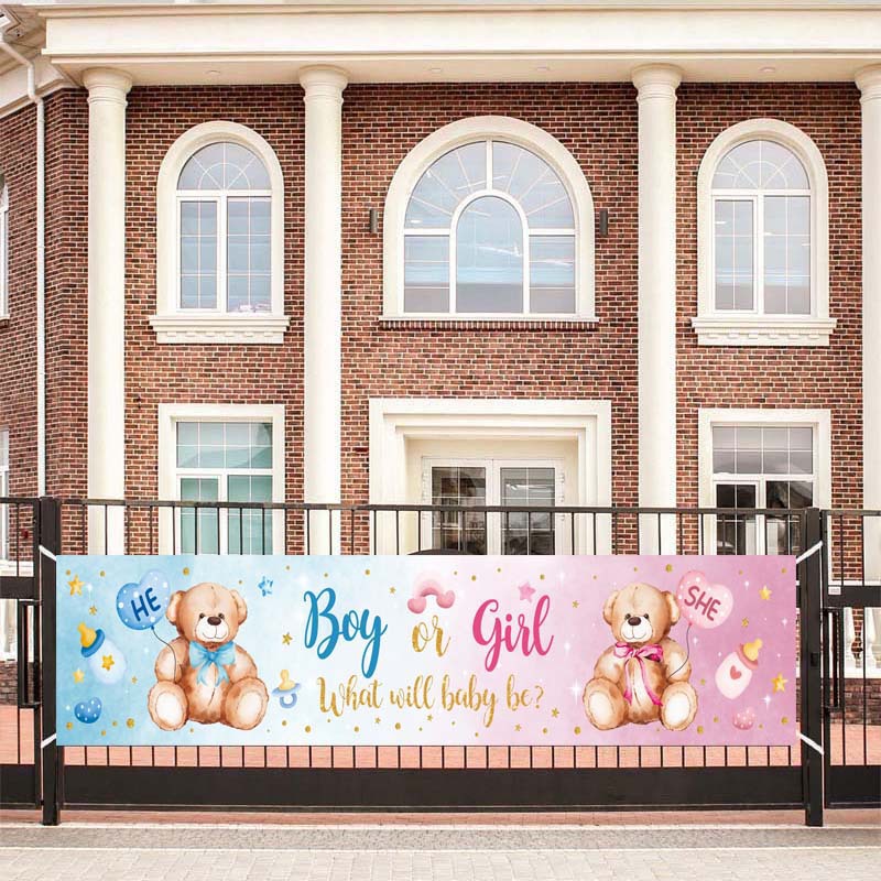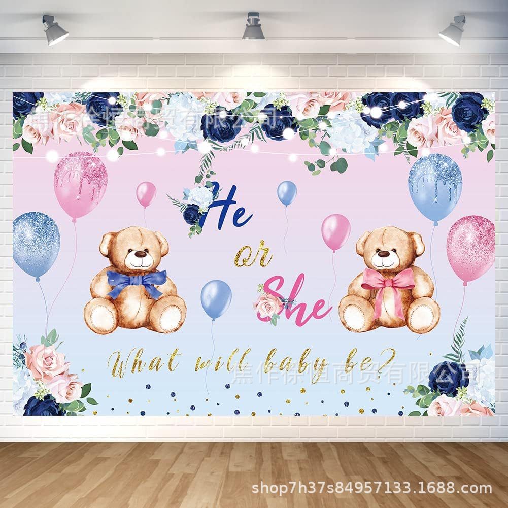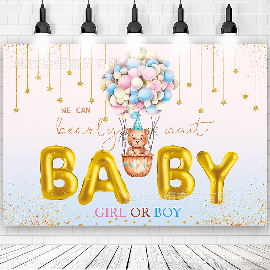 国境を越えた新しい水彩クマバルーン性別発表バナー性別パーティー装飾吊り旗吊り布バナー