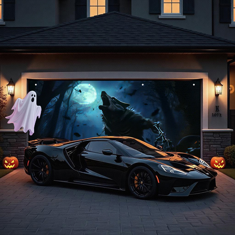 タイヤで積み上げたカボチャの城、ヒップホップの少年が踊るゾンビ人形、スパイダーウェブにスプレーされたリボン