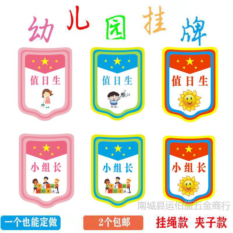 幼稚園の日替わり生徒のタグ、ストラップクリップ、クラス長のバッジ、個人グループ長のロゴ