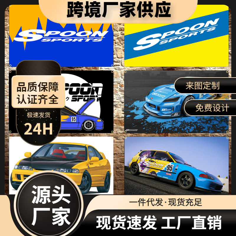 JimonFlag 90x150CM 3x5Ft スプーンスポーツ JDM レーシングフラッグ ポリエステル デジタルバナー ガレージウォール