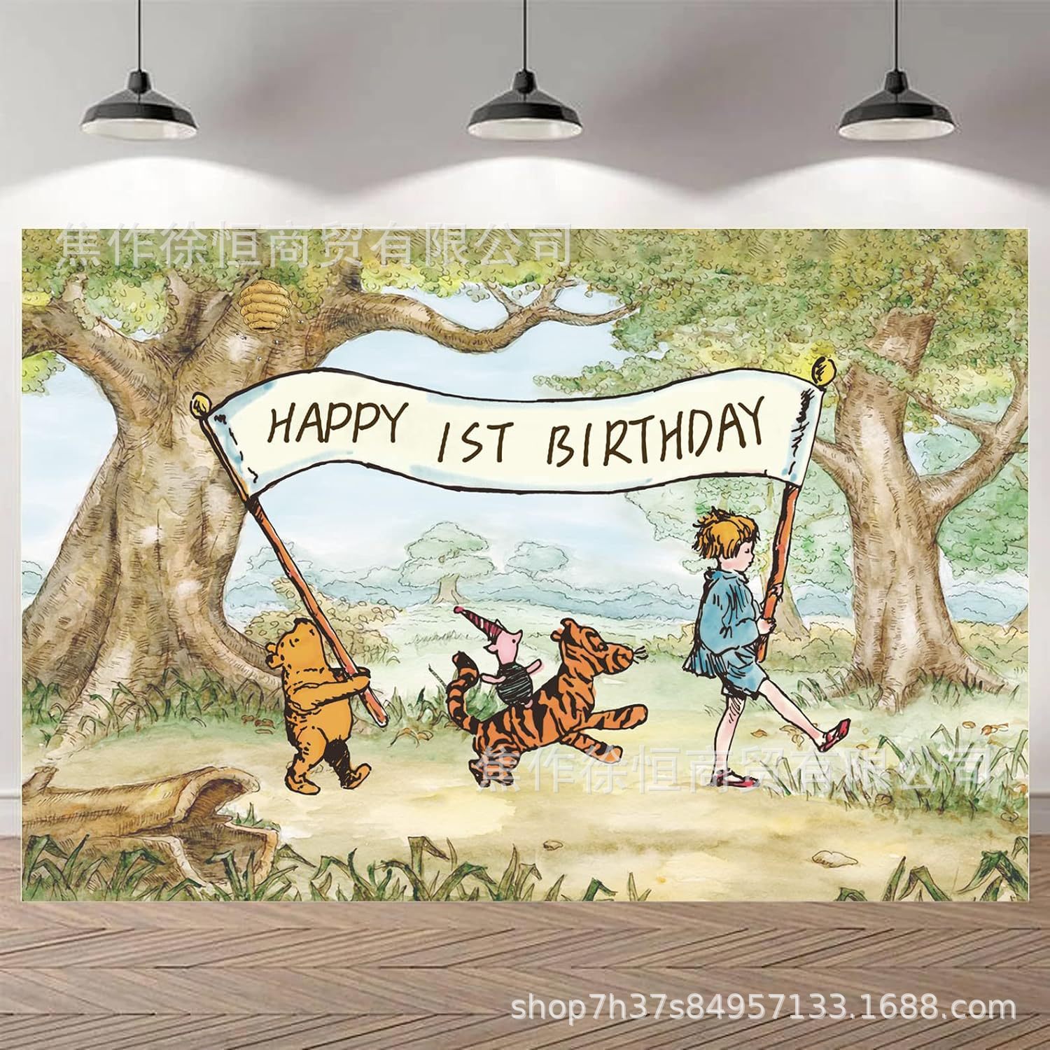 国境を越えたtemu熊winni漫画背景布装飾誕生日横断幕祝日パーティー雪だるま写真背景布