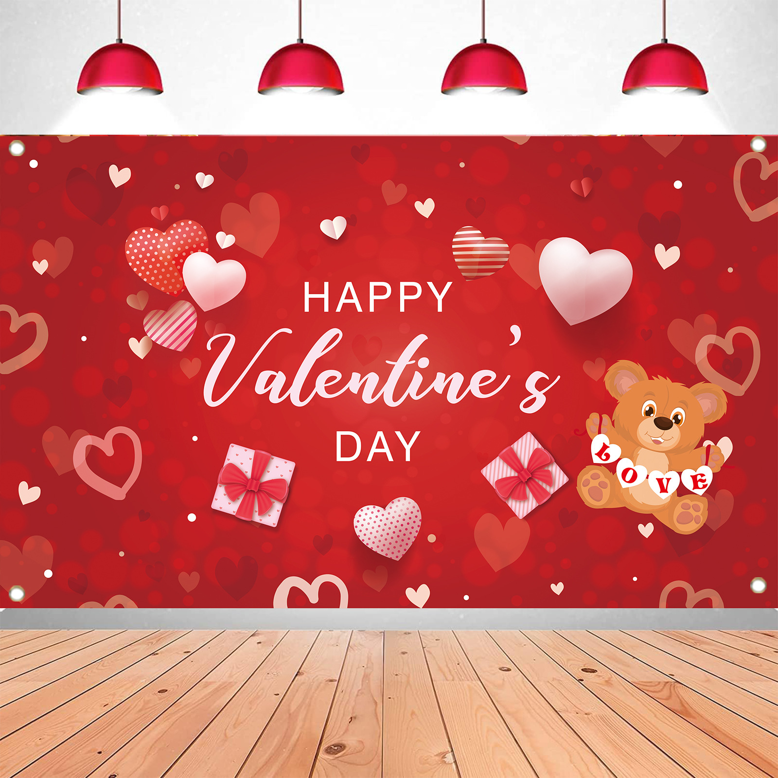国境を越えた2025新型バレンタインデー横断幕背景布ロマンチックなベアーのテーマ装飾シンボルの祝日に旗を配置する