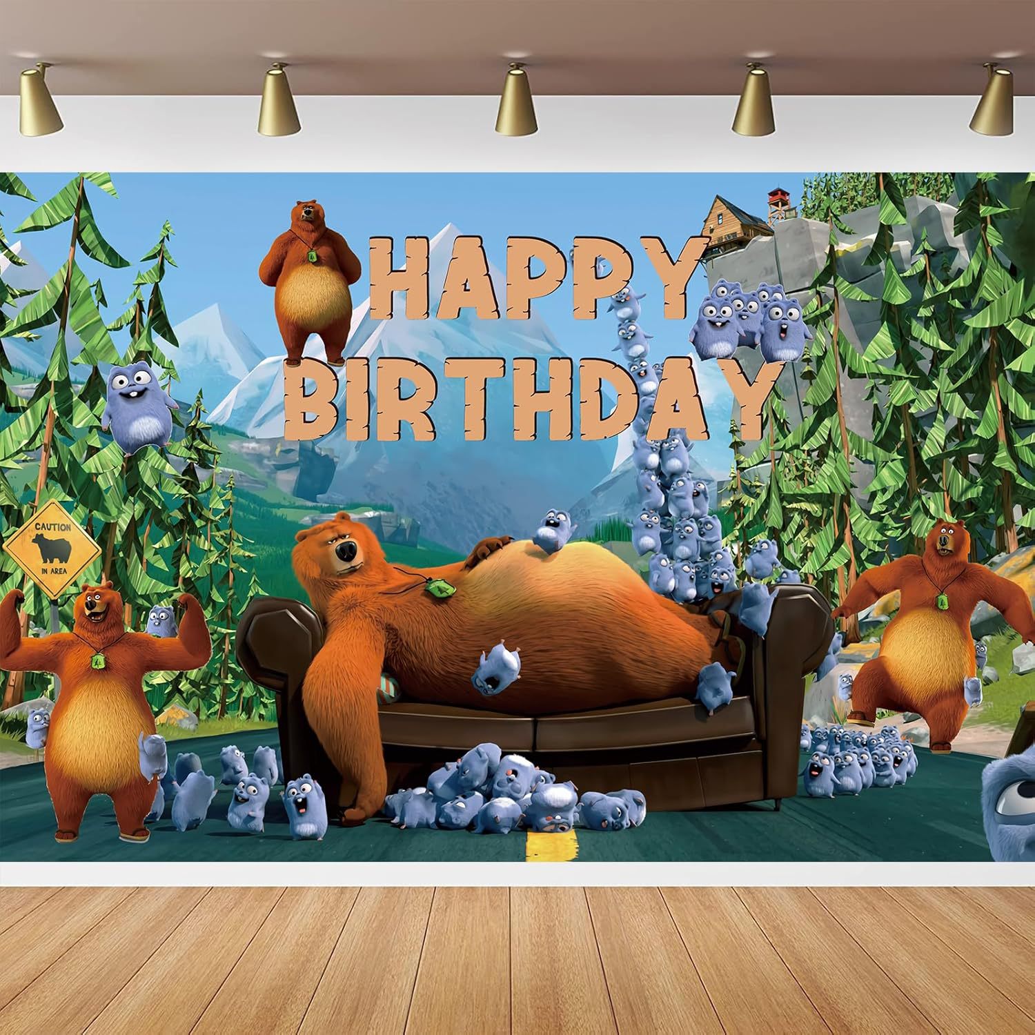 クロスボーダー誕生日背景布クマの出現漫画誕生日バナーお祝いパーティー吊り布写真背景布画像
