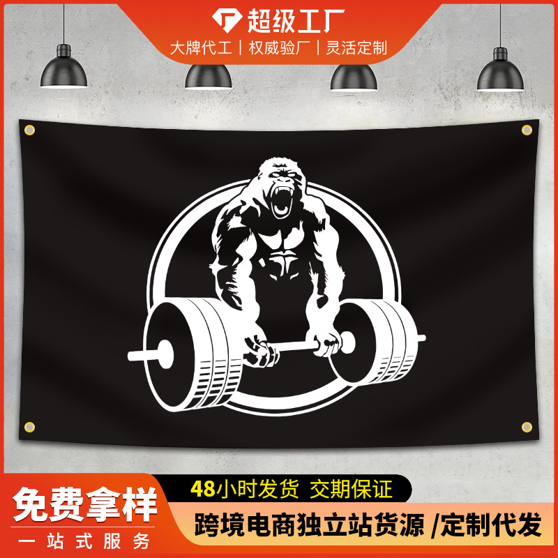 国境を越えたゴリラ重量挙げフィットネス背景布タペストリージムカーペット工場卸売りアマゾン旗カスタマイズ