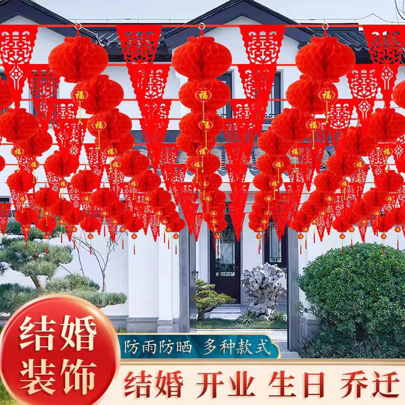 ウェディングフラッグ、屋外ヤードウェディング用品、ランタン装飾、田舎の花のリボンアレンジメント、ウェディングフラッグ
