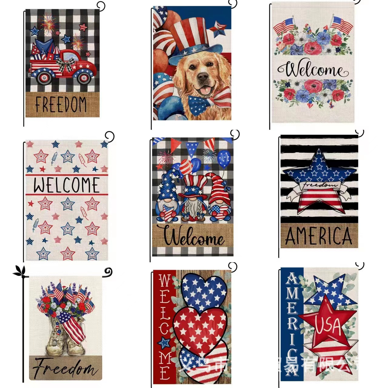 国境を越えて人気のある新型独立日花園旗ポリエステル亜麻両面庭園装飾祝日花園旗