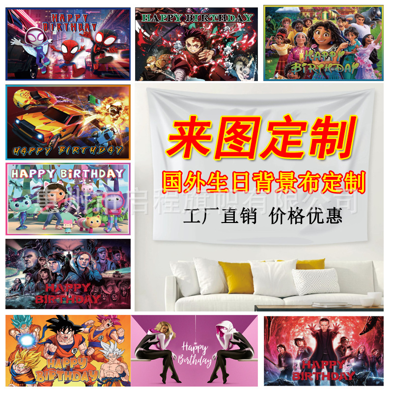 外国貿易の旗の背景の布のアマゾンの誕生日の横の幅の布のテーマのパーティーは暗い外国貿易の越境のメーカーを飾ります。