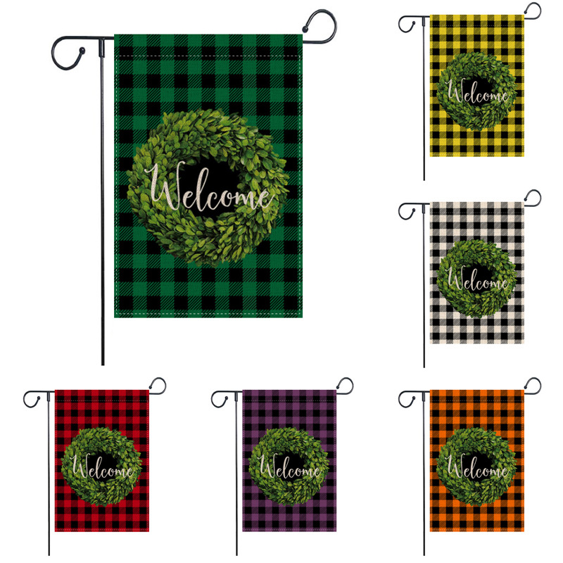 新作春花環花園旗両面プリント庭園旗格子祝日旗屋外旗花園旗