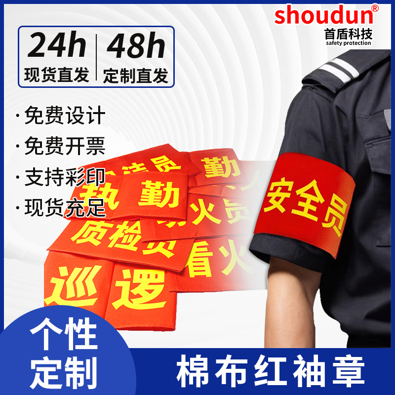 赤い腕章の腕章の安全員の治安パトロールの当直のボランティアの保護林の防火の腕章の卸売りの印字の開票