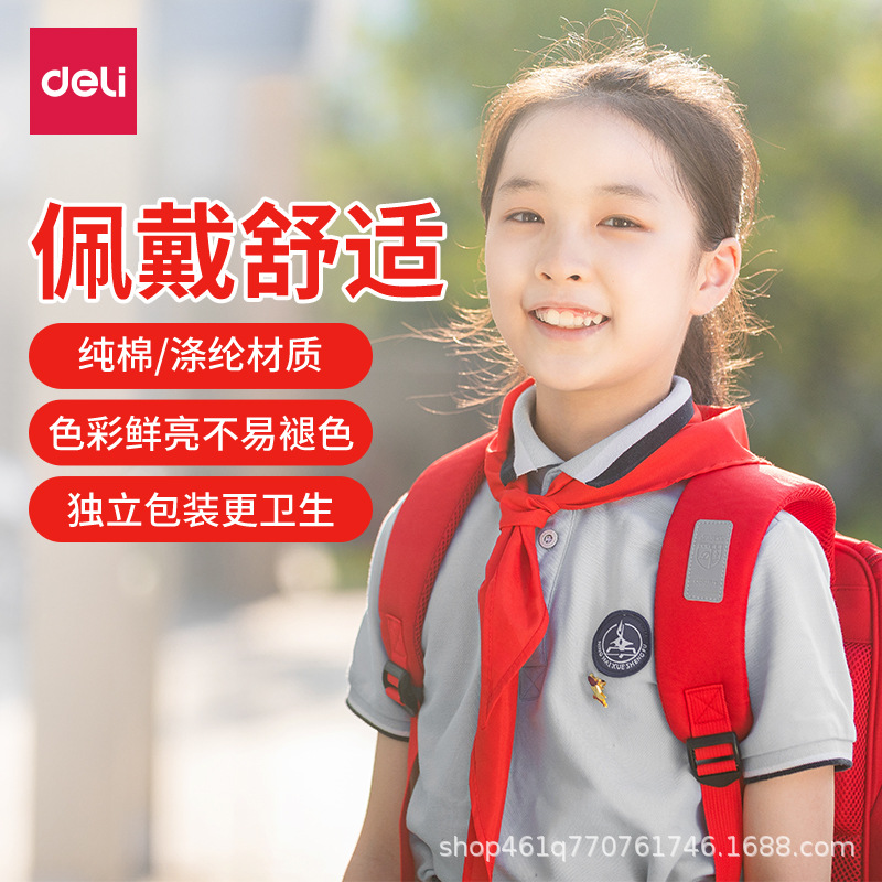 Deli/有力な赤いスカーフの小学生の通用の純綿の卸売りは1.2メートルの通用標準の規格品の大きいサイズを結びます。