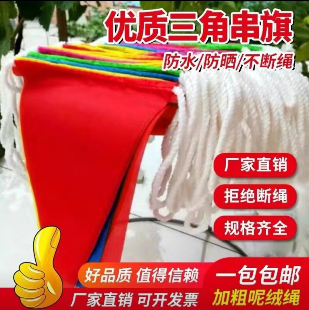 カラフルな旗、三角旗、ストリングフラッグ、結婚式、赤旗、建設現場警察旗、オープニングフェスティバルのお祝い、太いロープのカラフルな旗