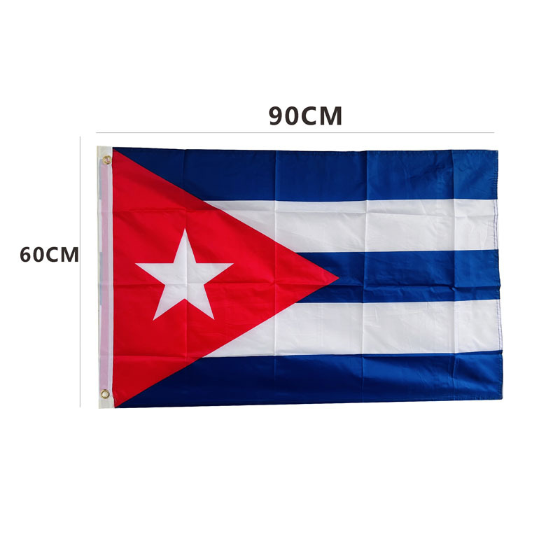 国境を越えたメーカーがキューバの旗ポリエステル布の材質を直接販売している2本の糸の縁に60*90cmのキューバ国旗を掛けている